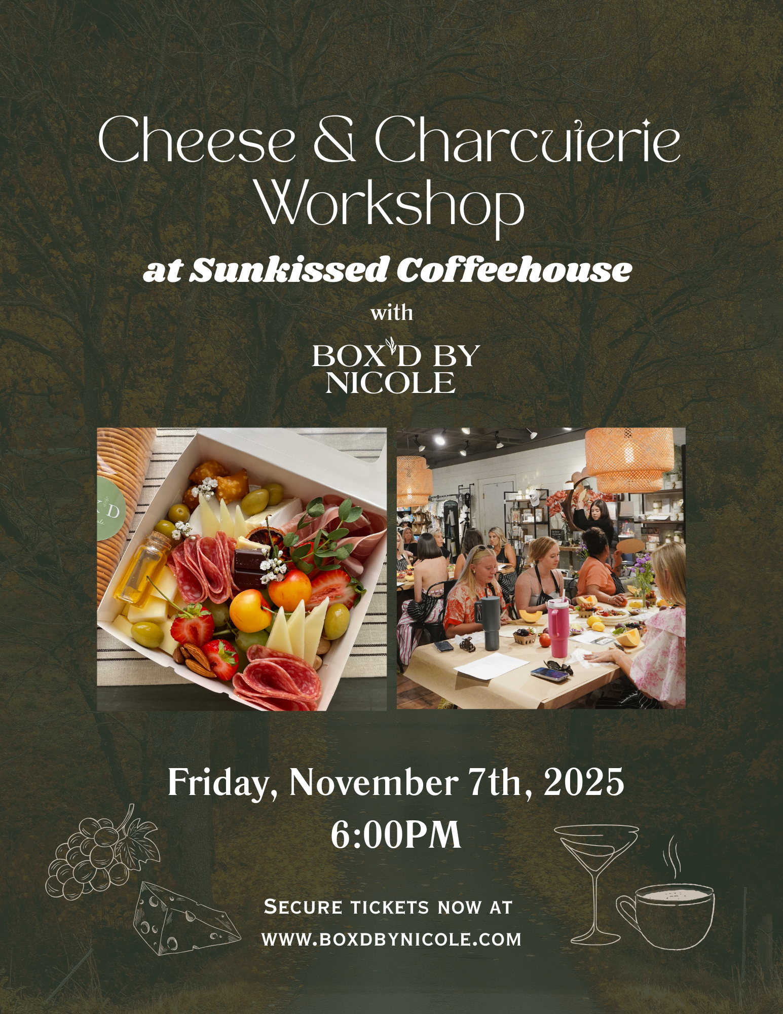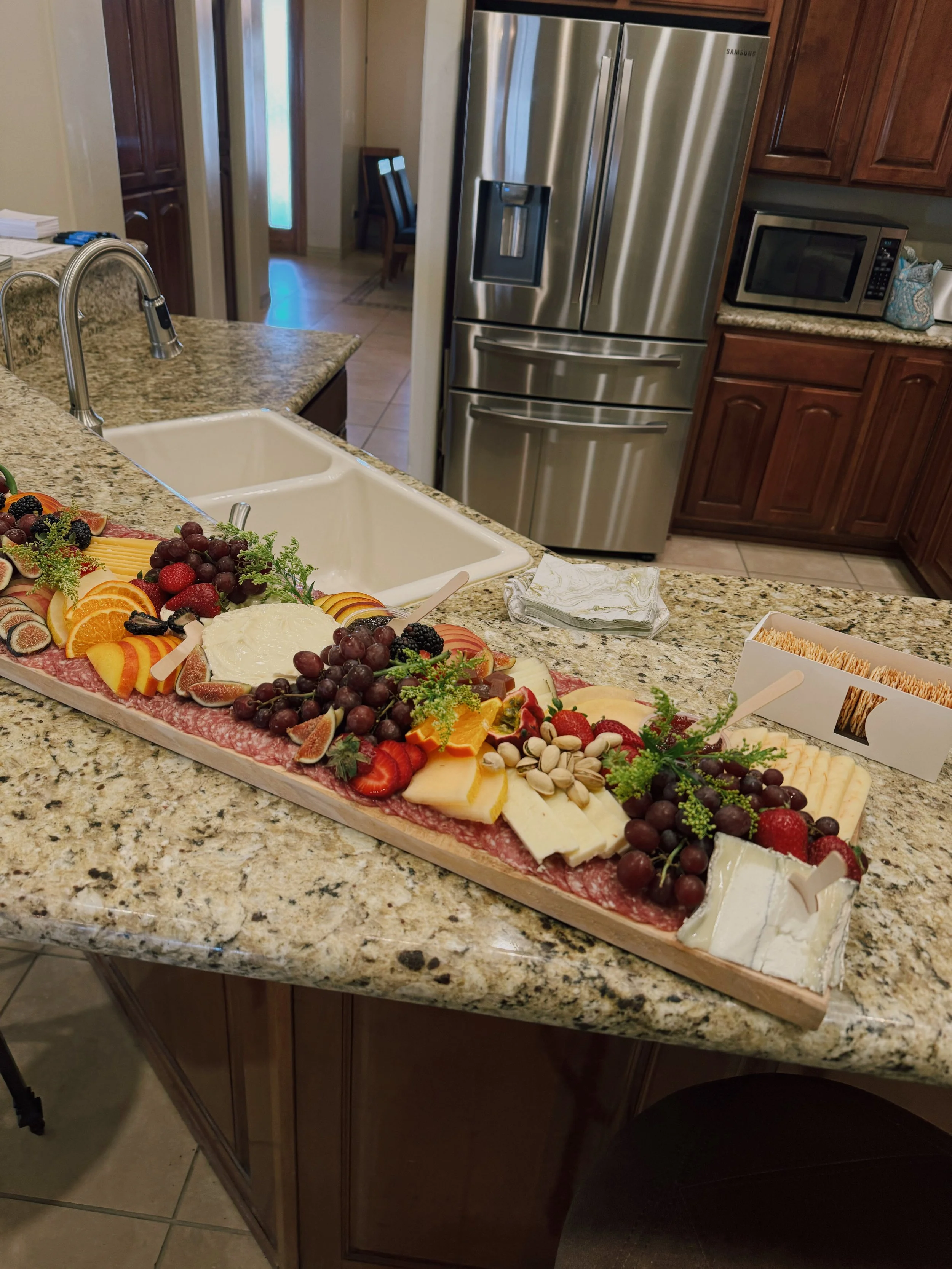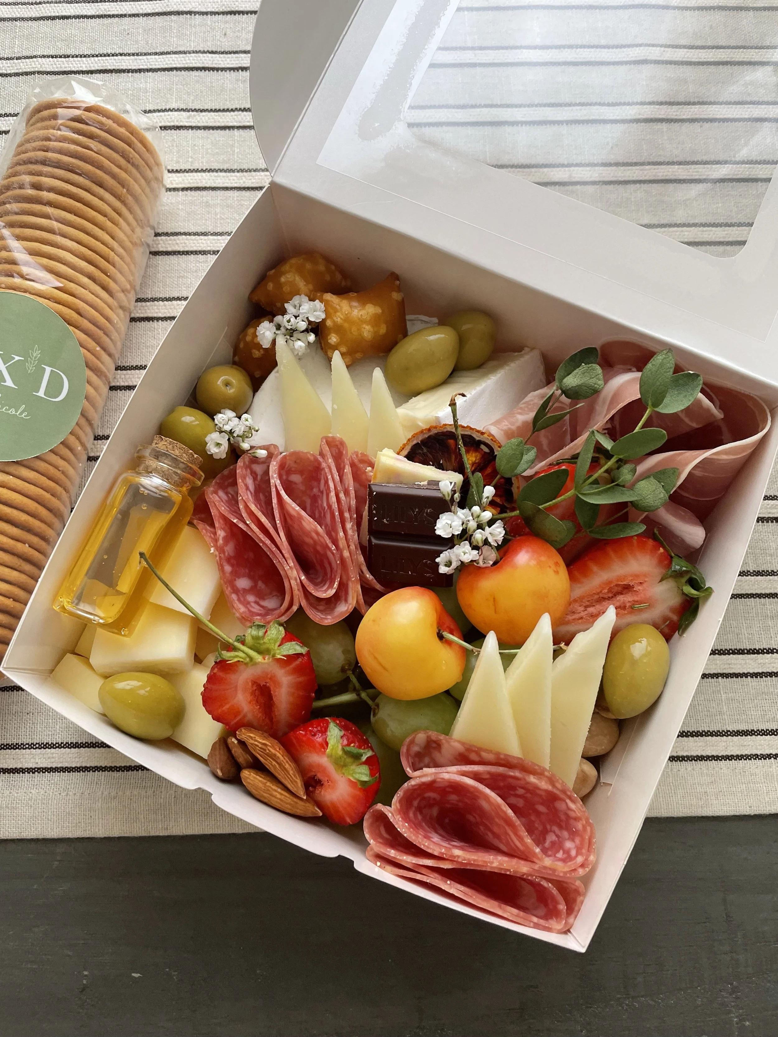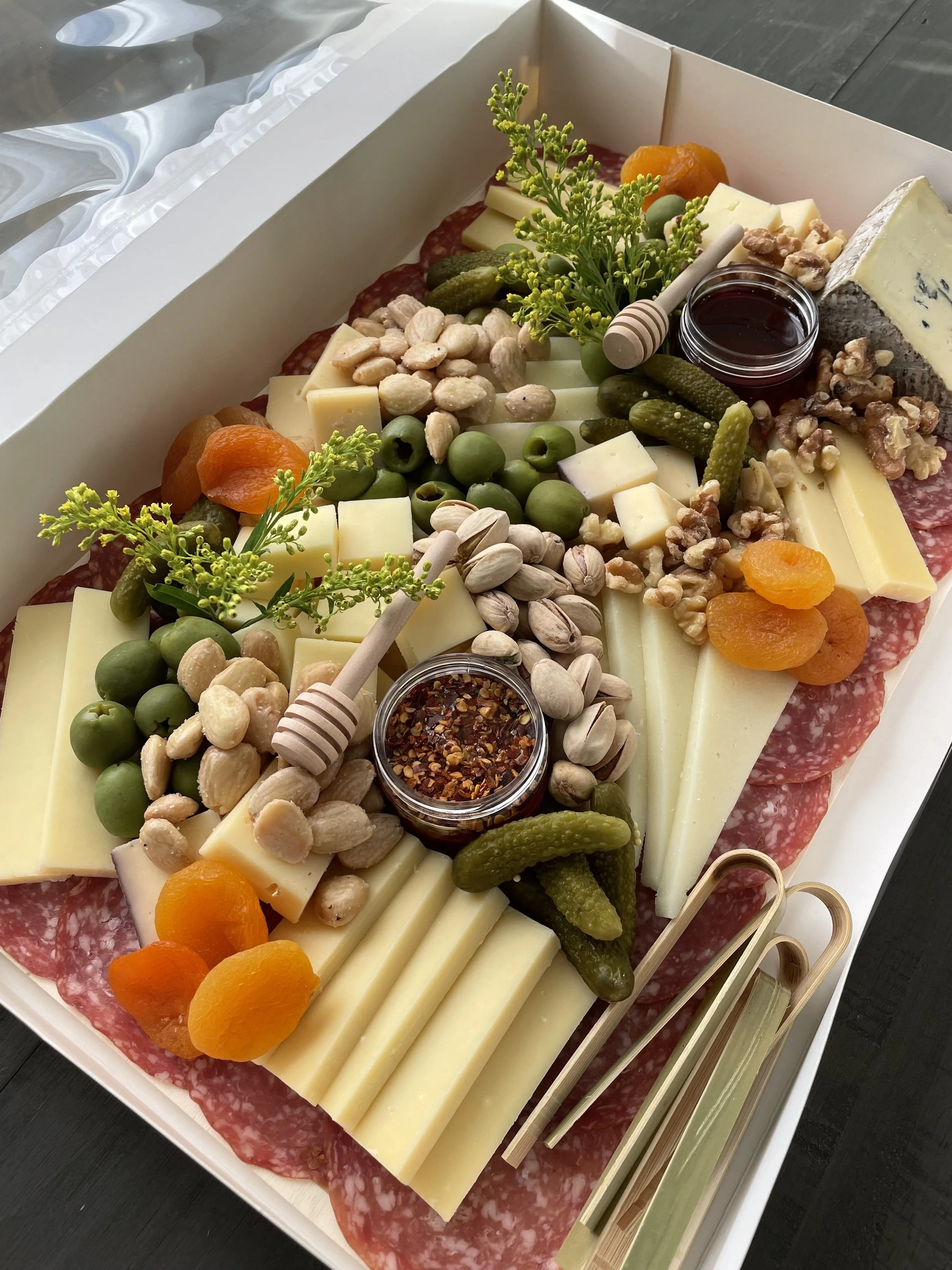 Categories: All Personal Boards All | Personal | Boards | Quick View Classic Savory from $98.00 Quick View Skelly Board from $98.00 Quick View Harvest Board (Seasonal) from $98.00 Quick View X-Large Cheese & Charcuterie Board $285.00 Quick View Seasonal Fruit $78.00 Quick View Classic Picnic Box $48.00 Quick View Workshop Ticket: Cheese & Charcuterie at Sunkissed Coffeehouse $55.00 Sold out Quick View (12ct) Charcuterie Boats $96.00 Quick View (12ct) Charcuterie Cups $168.00 Sold out Quick View Nicole's Fruit Basket $89.00 Sold out Quick View Tart Cherry, Cacao Nib, & Almond Artisan Crisps $8.50 Sold out